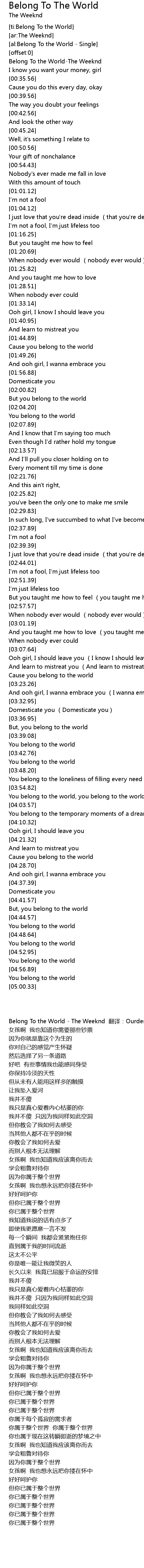 | [00:01.31] | Belong To the WorldThe Weeknd |