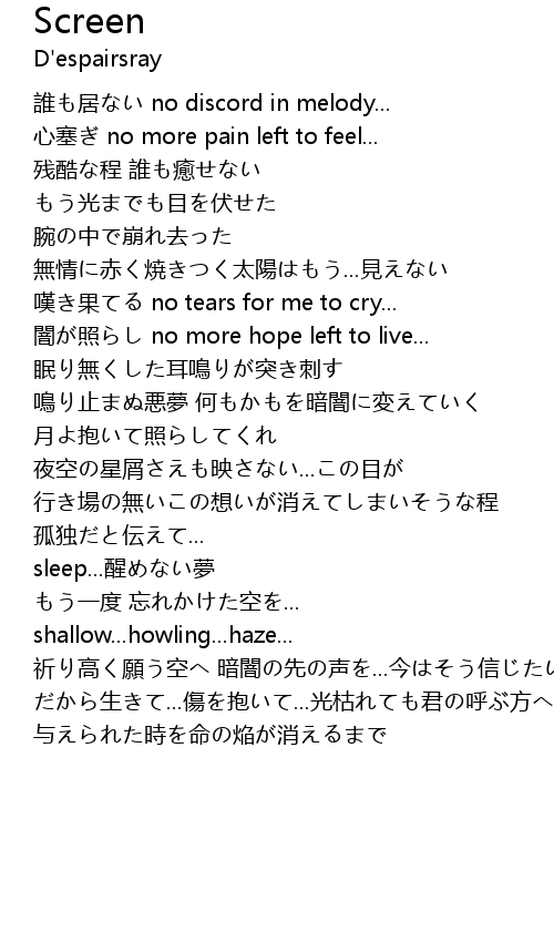 | 鳴り止まぬ悪夢 何もかもを暗闇に変えていく | |