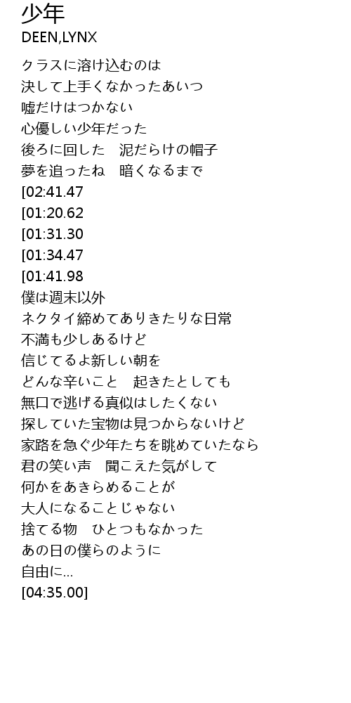 | [02:55.54] | 家路を急ぐ少年たちを眺めていたなら |