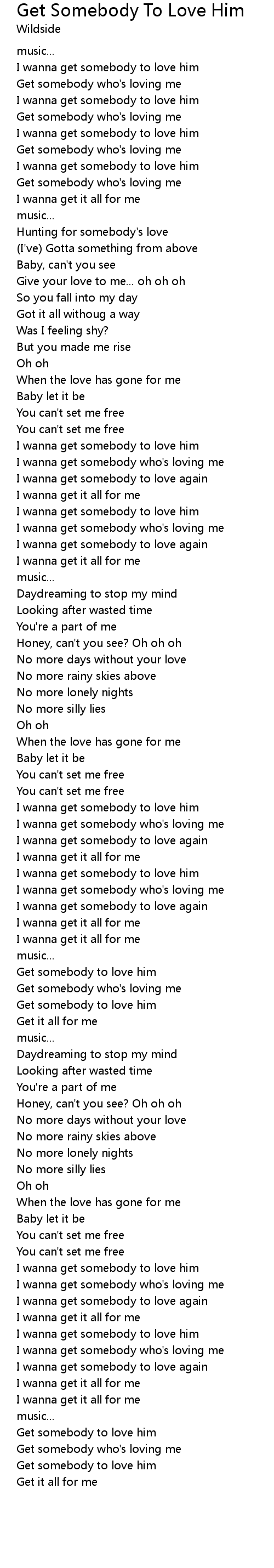 I wanna get somebody to love him |