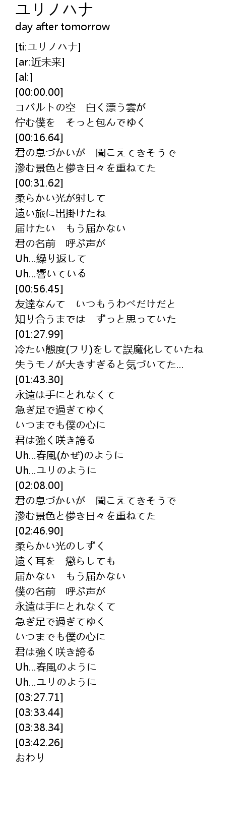 | [00:44.28] | 君の名前 呼ぶ声が |