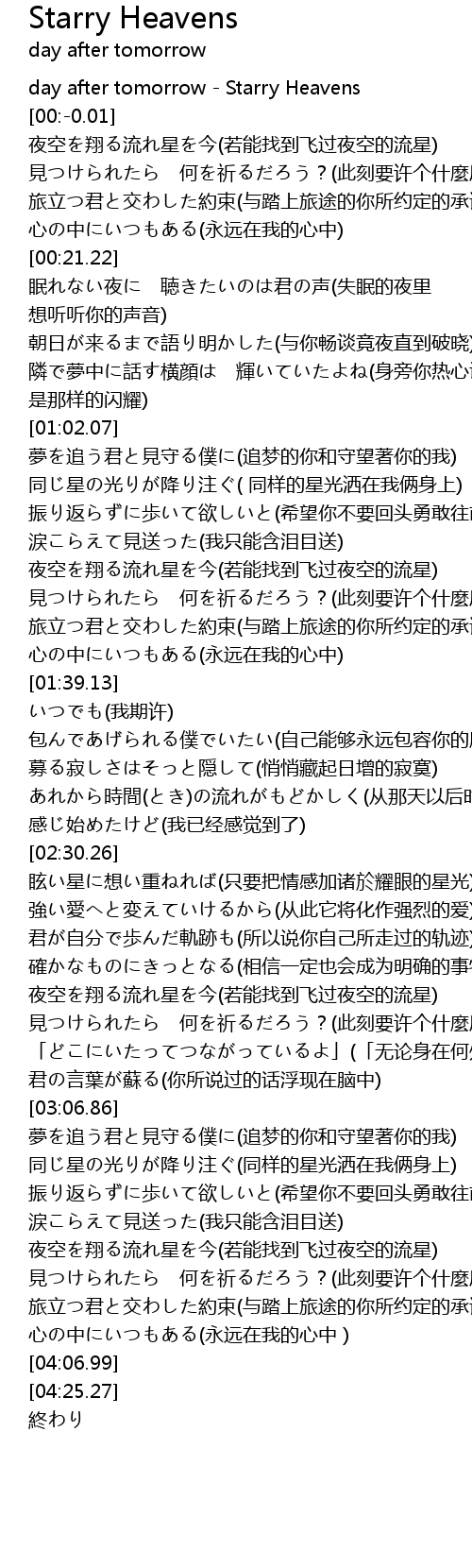 | [00:-0.50] | day after tomorrow - Starry Heavens |