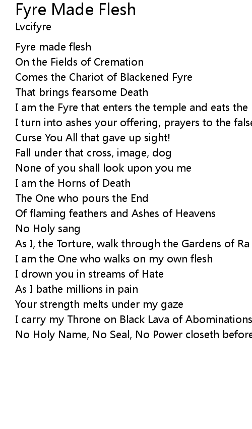 | I am the Fyre that enters the temple and eats the hearts of the priests | |