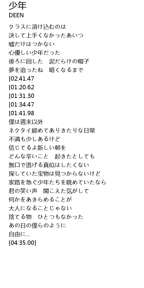 | [02:55.54] | 家路を急ぐ少年たちを眺めていたなら |