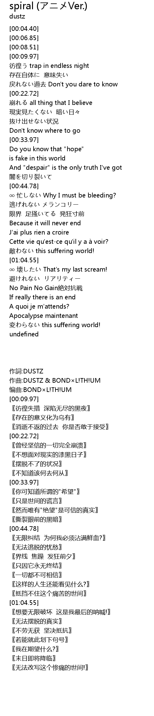 | [00:45.27] | ∞ 忙しない Why I must be bleeding? |