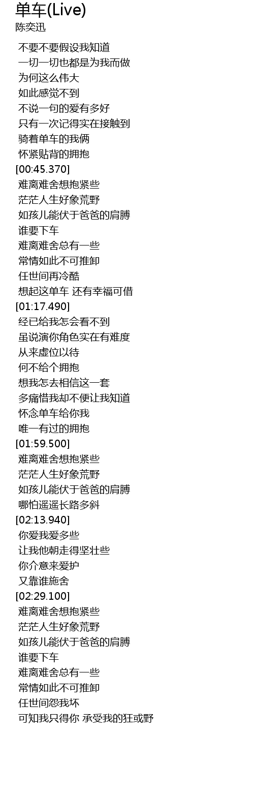 | [01:53.750] | 怀念单车给你我 |