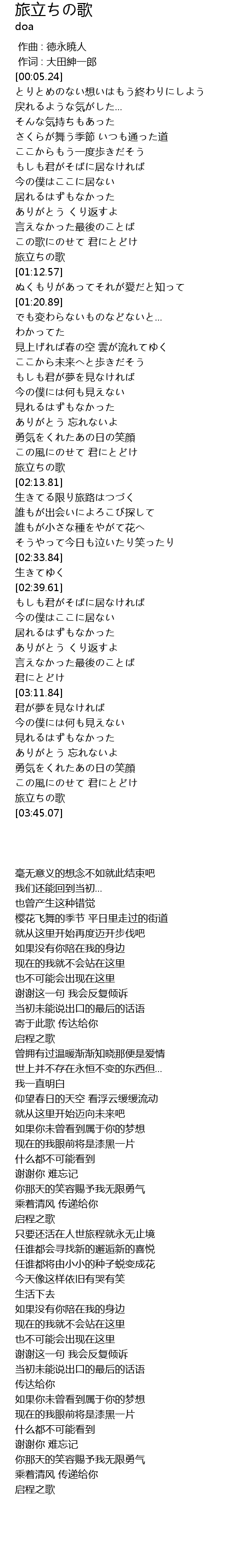 | [03:38.35] | 旅立ちの歌 |