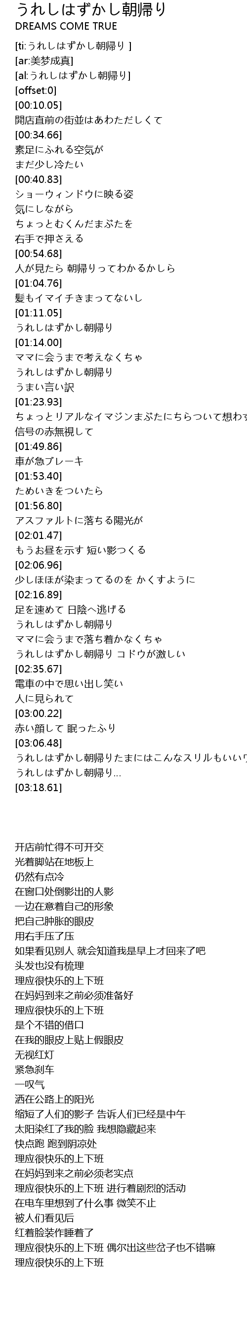 | [02:30.91] | うれしはずかし朝帰り コドウが激しい |