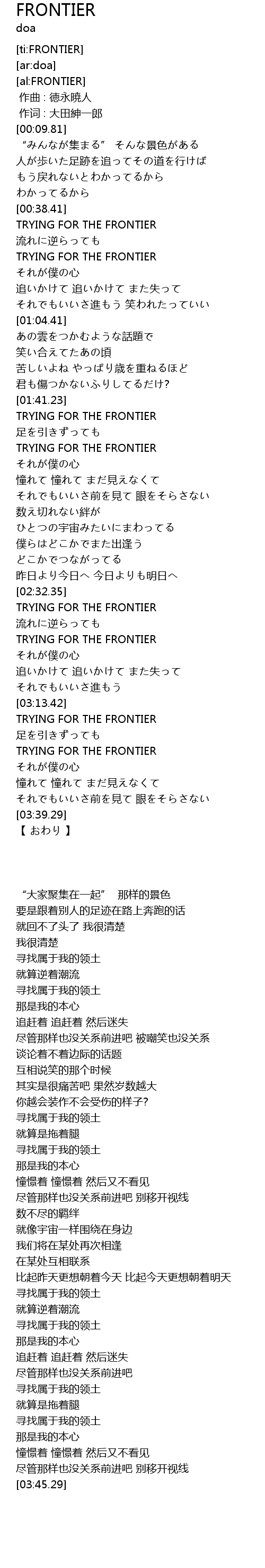 | [00:45.71] | TRYING FOR THE FRONTIER |