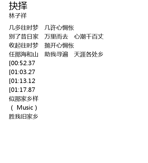 | [02:30.44] | shèng wǒ jiù jiā xiāng |