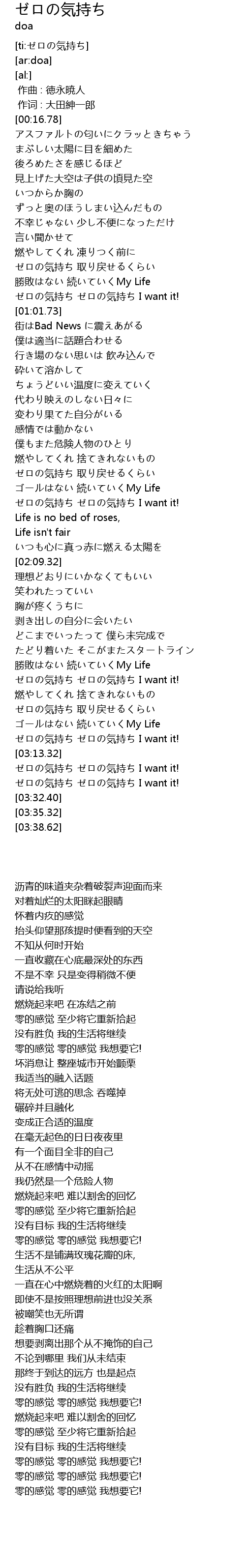 | [00:58.34] | ゼロの気持ち ゼロの気持ち I want it! |