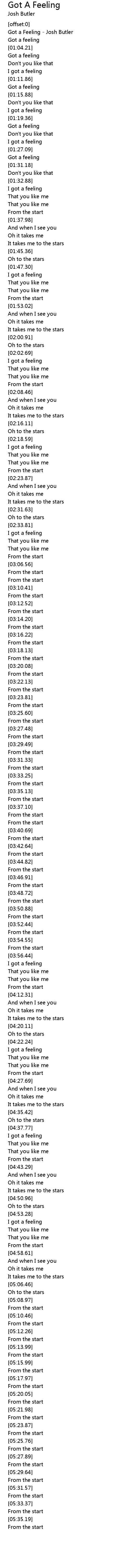 | [00:00.75] | Got a Feeling - Josh Butler |