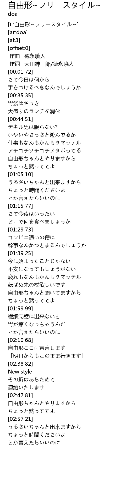 | [ti:自由形~フリースタイル~] | |