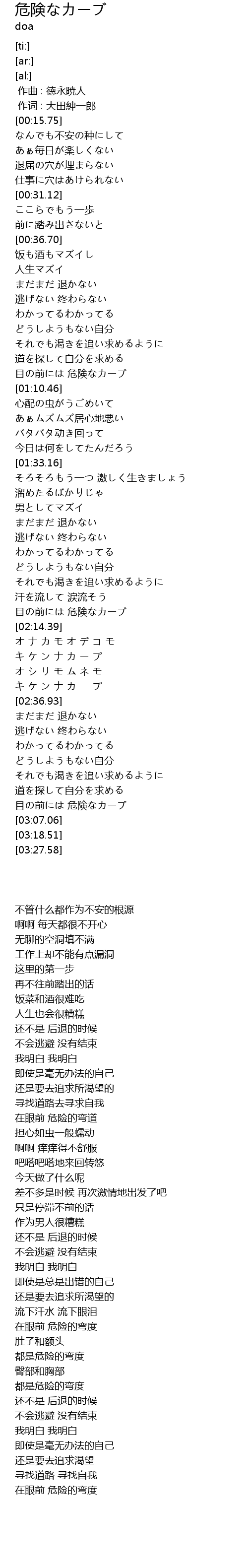 | [03:02.39] | 目の前には 危険なカーブ |