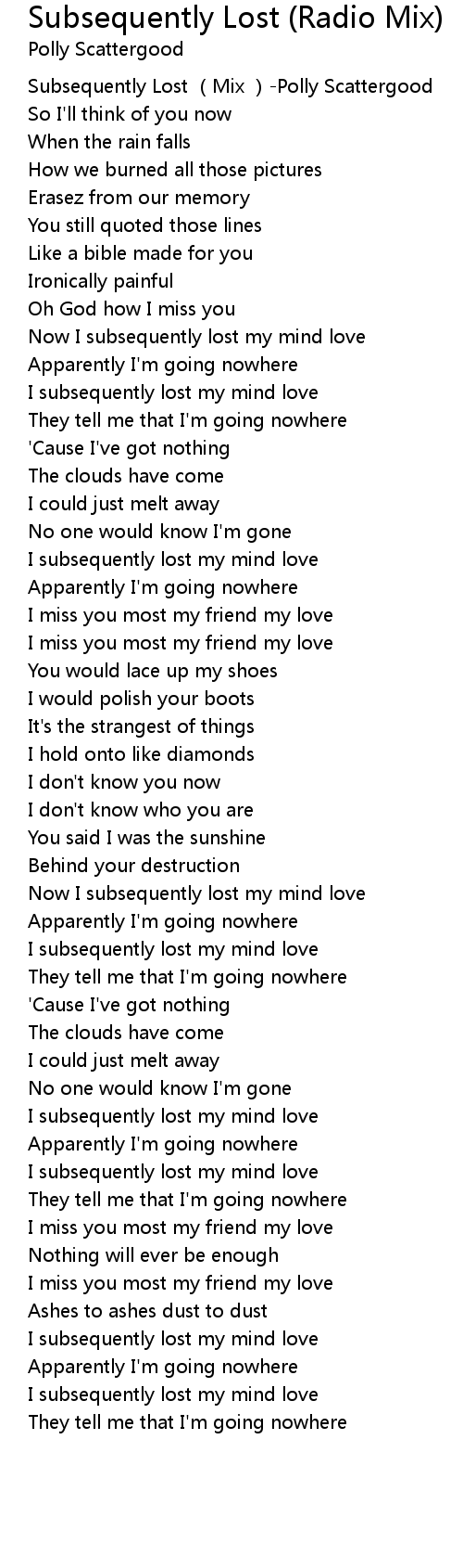 | [00:00.00] | Subsequently Lost Mix Polly Scattergood |