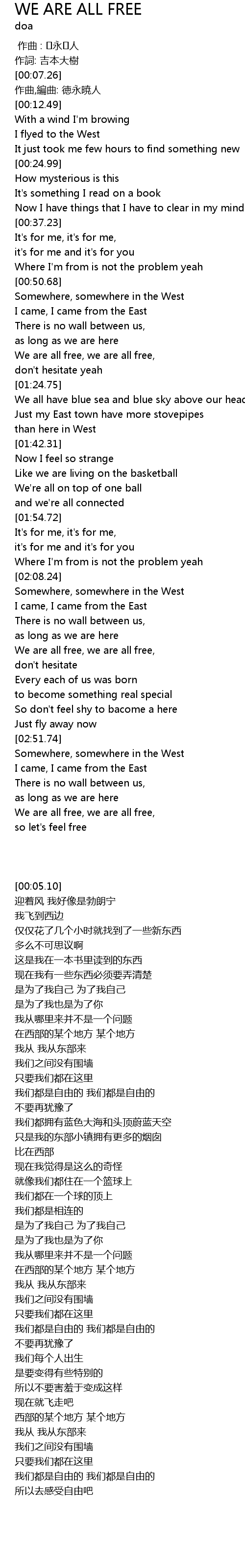 | [01:31.61] | We all have blue sea and blue sky above our head |