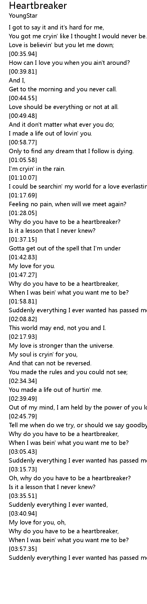 Oh, why do you have to be a heartbreaker? |
