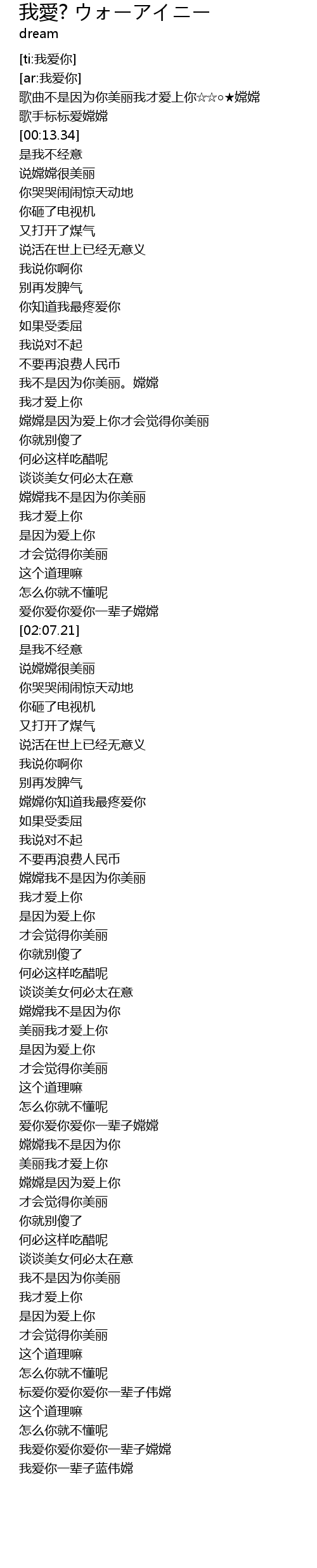 | [04:12.40] | 标爱你爱你爱你一辈子伟嫦 |