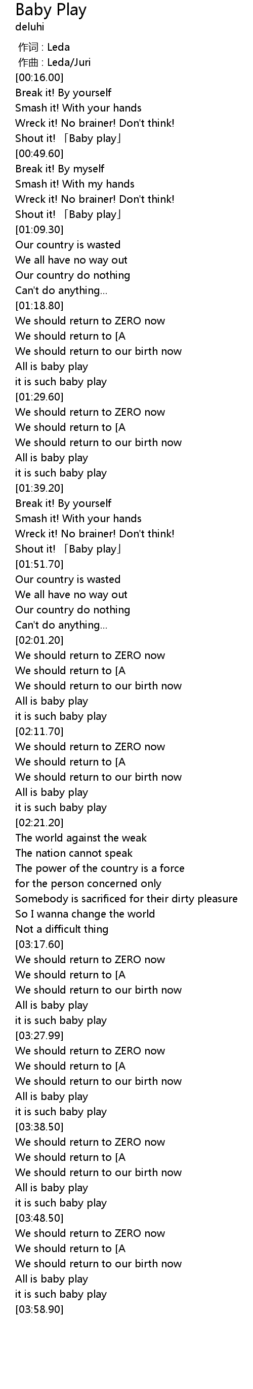 | [01:37.00] | All is baby play |