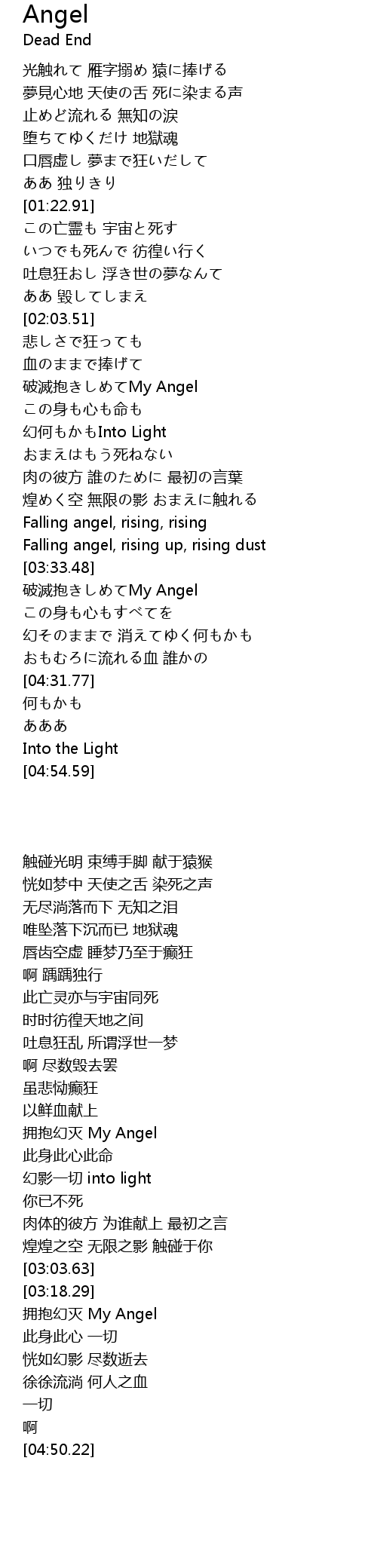| [00:44.84] | 夢見心地 天使の舌 死に染まる声 |