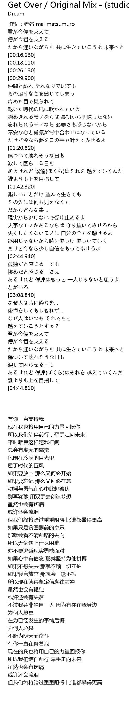 | [00:00.00] | 作词 : 者名 mai matsumuro |