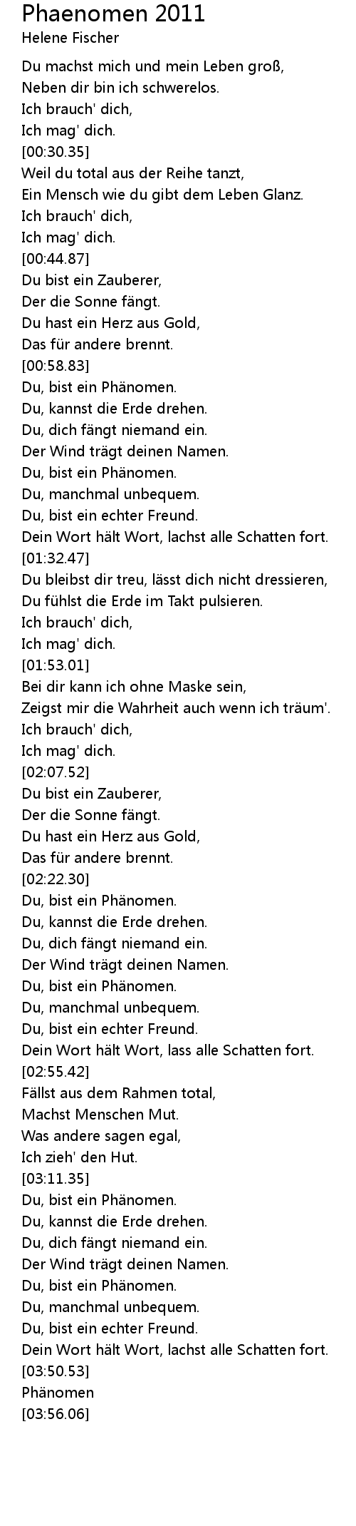 | [03:31.58] | Du, bist ein Ph nomen. |