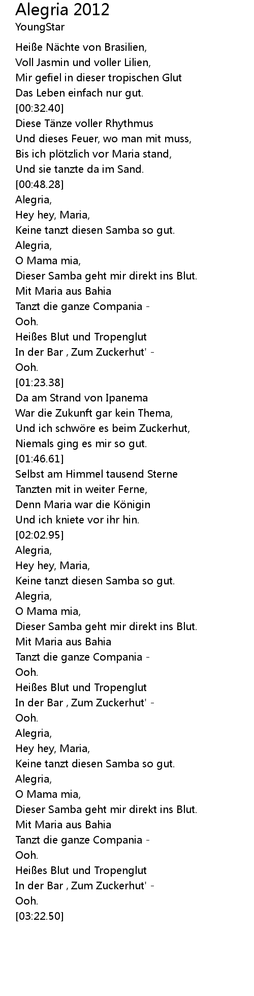 | [02:21.81] | Mit Maria aus Bahia |
