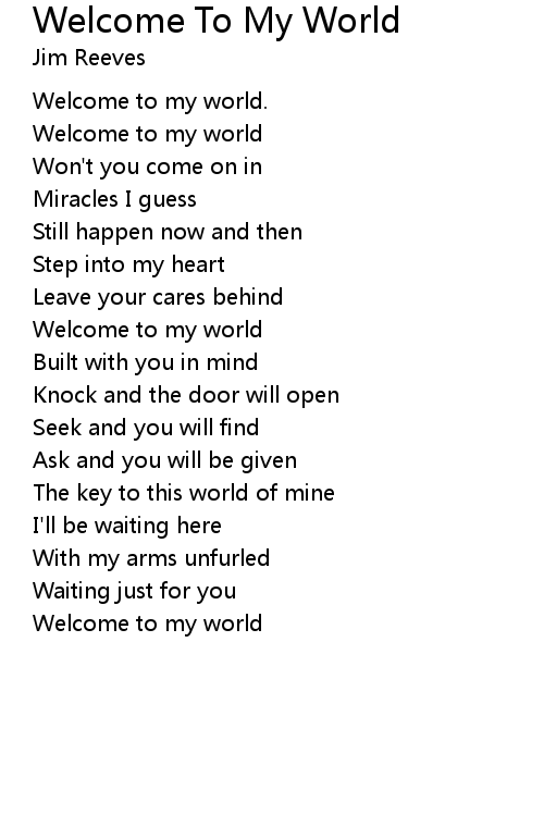 | Song | Welcome To My World |