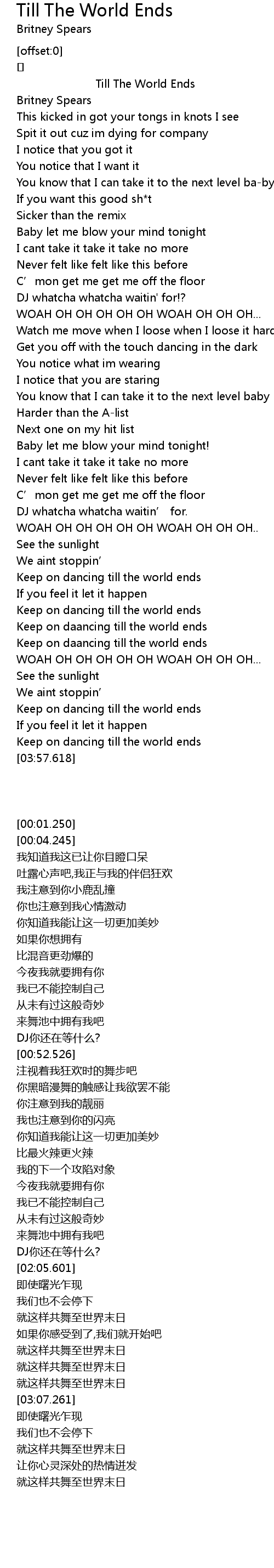 | [00:01.250] | Till The World Ends |