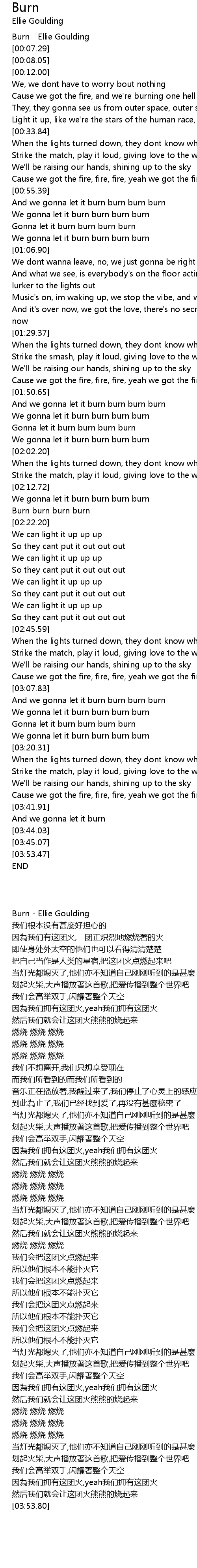 [00:00.73] Burn - Ellie Goulding
