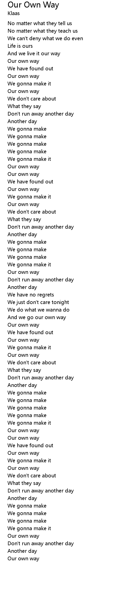 And we go our own way |