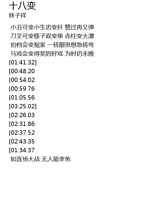 | [02:03.08][00:48.20] | 草根可变雪花翻两翻 笑柄变奇谈 谁没变 |