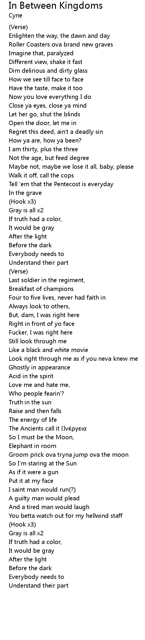 | Song | In Between Kingdoms |