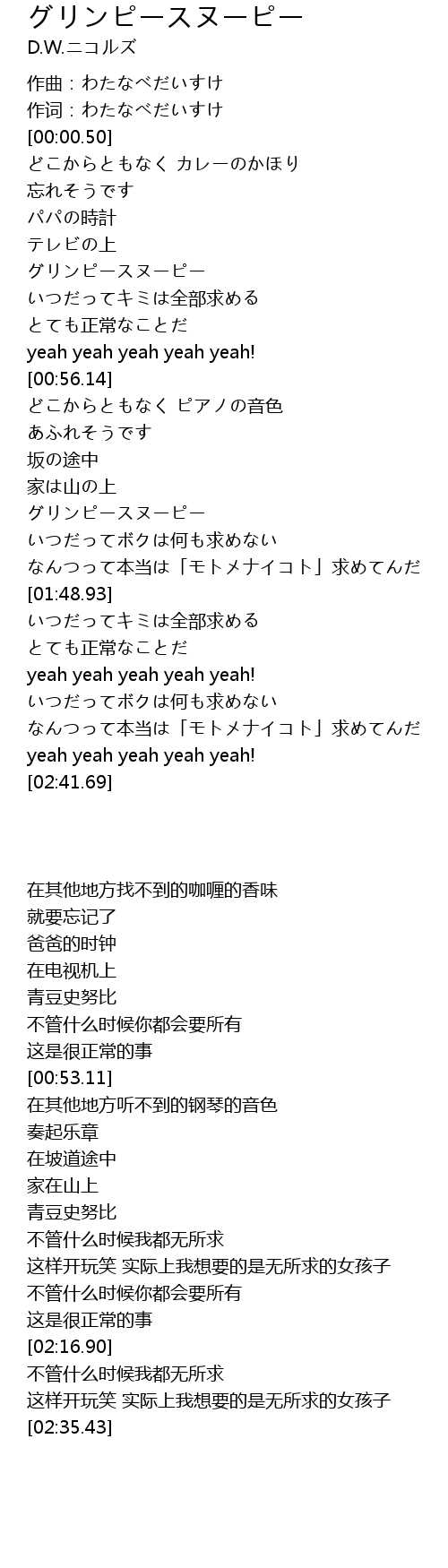 | [00:42.13] | グリンピースヌーピー |