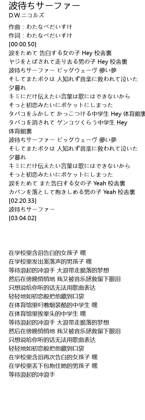 | [01:20.14] | 波待ちサーファー ビッグウェーヴ 儚い夢 |