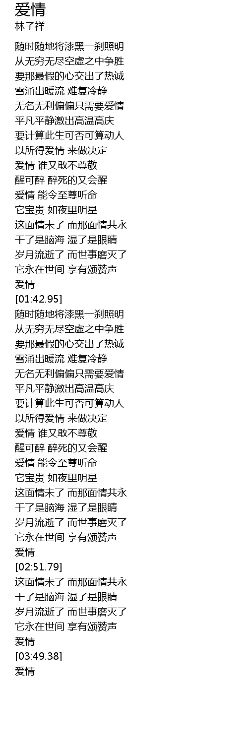 | [02:03.47] | 无名无利偏偏只需要爱情 |