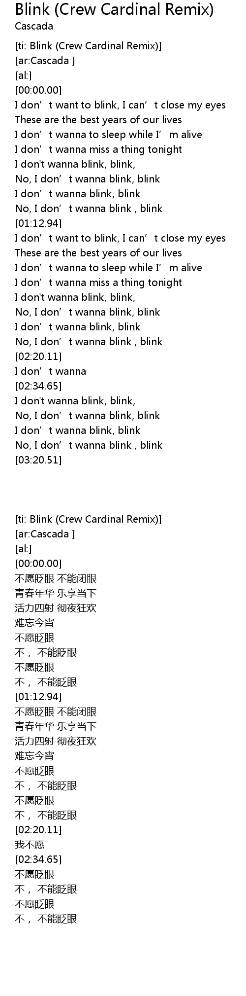 | [03:16.87] | No, I don' t wanna blink , blink |
