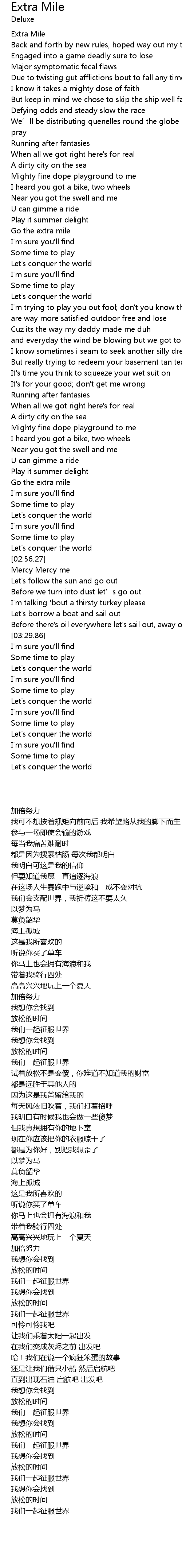 | [03:24.95] | Before there's oil everywhere let's sail out, away out |