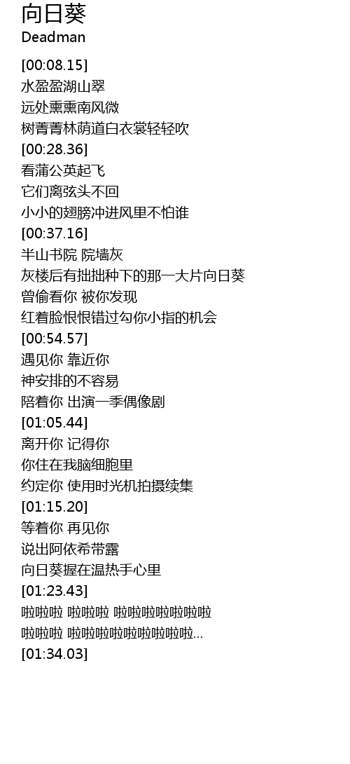 | [00:40.35] | 灰楼后有拙拙种下的那一大片向日葵 |