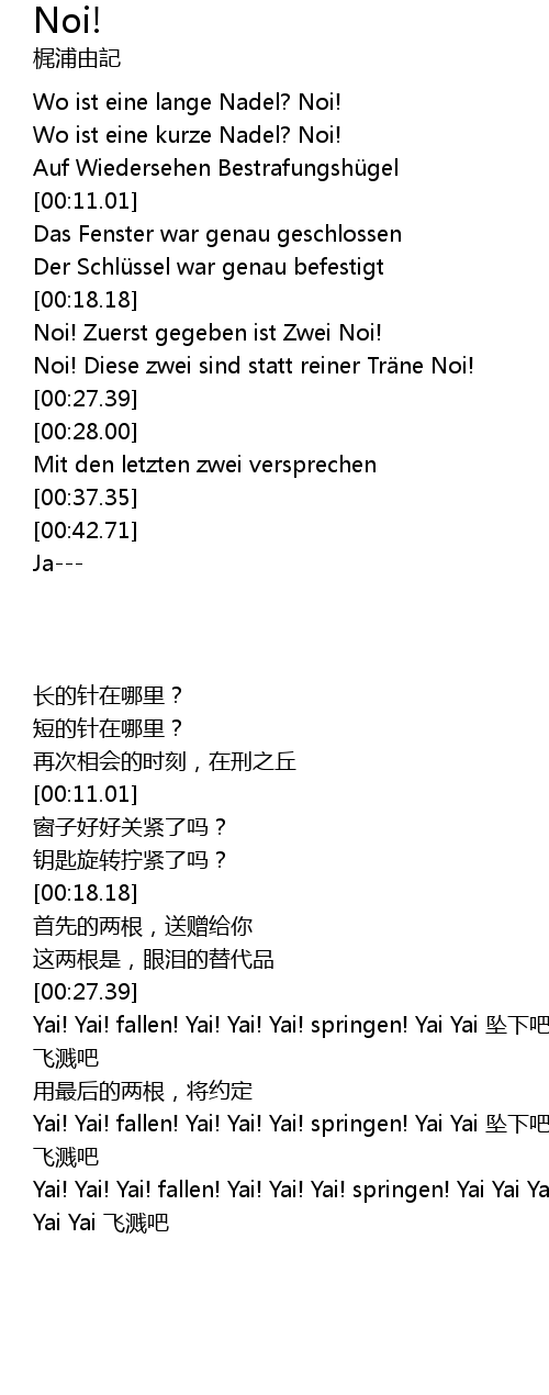 | [00:18.66] | Noi! Zuerst gegeben ist Zwei Noi! |