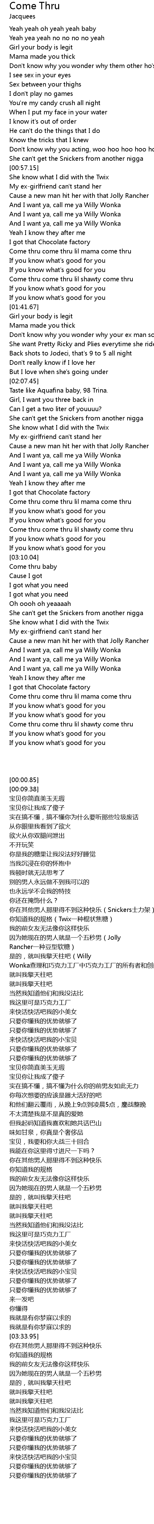 | [02:51.28] | Come thru come thru lil mama come thru |