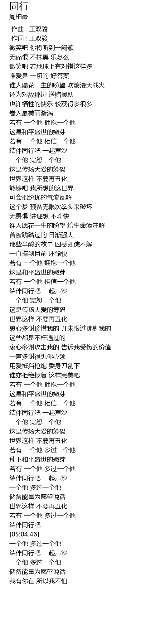 | [04:39.73] | 结伴同行吧 一起声沙 |
