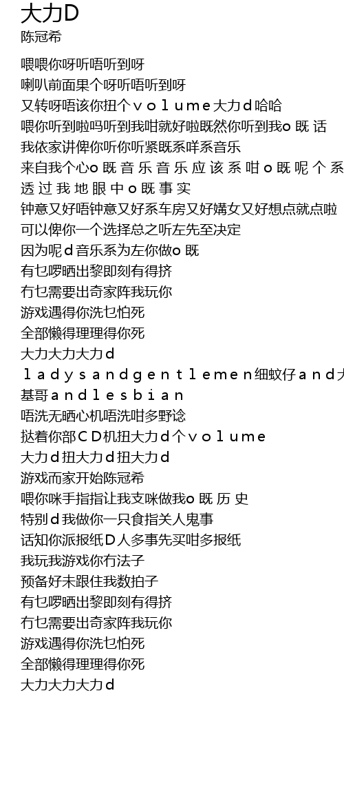 | [01:40.82] | 大力d扭大力d扭大力d |
