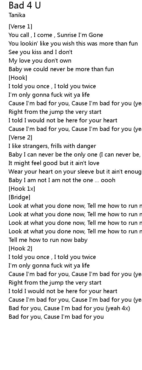 Cause I'm bad for you, Cause I'm bad for you (yeah 4x) |