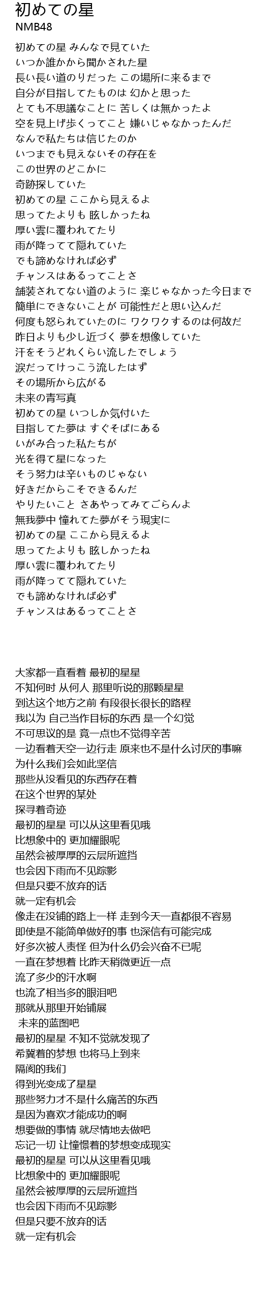 | Song | 初めての星 |