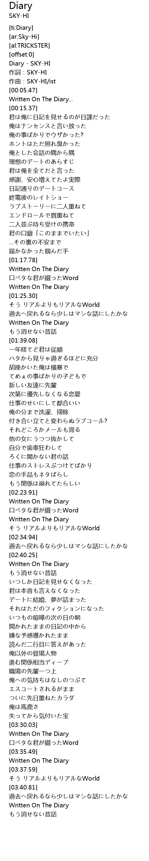 | [00:33.57] | 君は俺に日記を見せるのが日課だった |