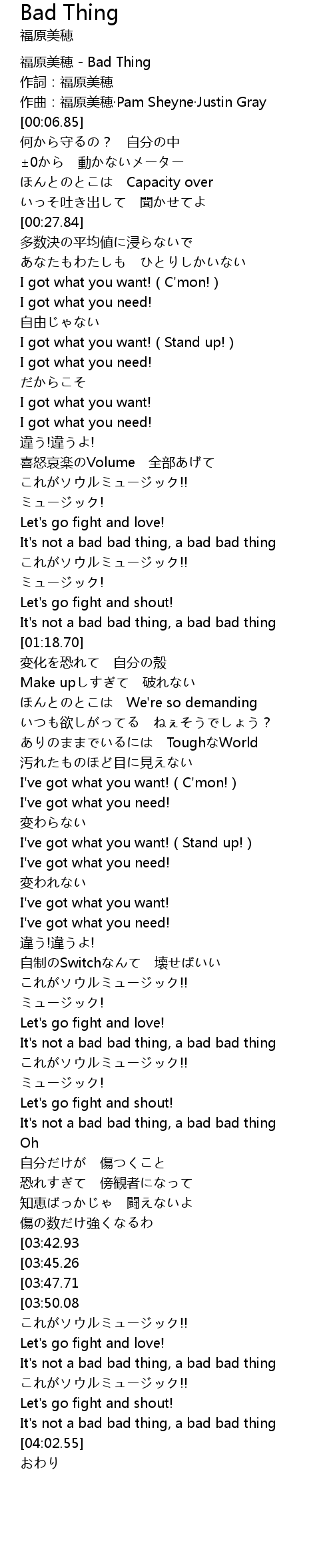 | [00:00.00] | 福原美穂 - Bad Thing |