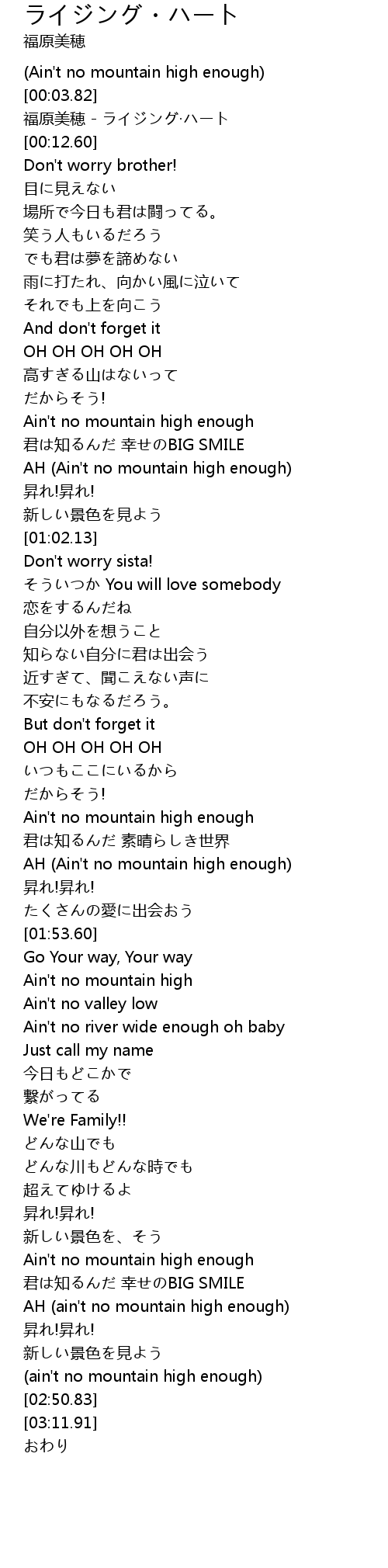 | [00:05.42] | 福原美穂 - ライジング·ハート |