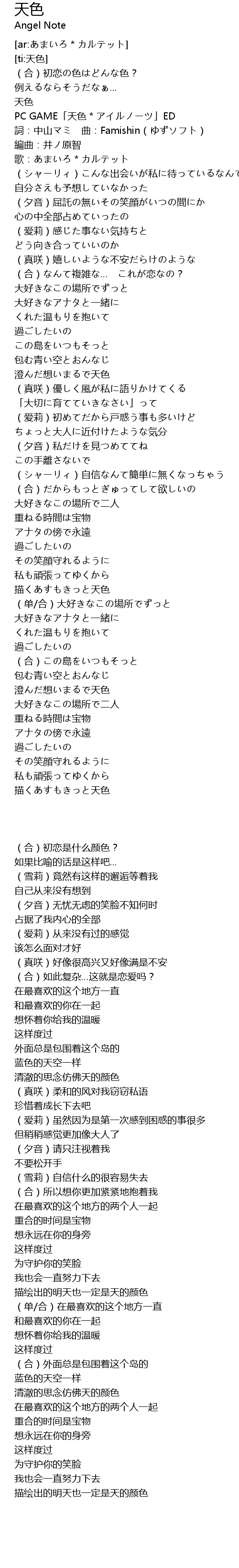 | [00:12.30] | PC GAME「天色*アイルノーツ」ED |