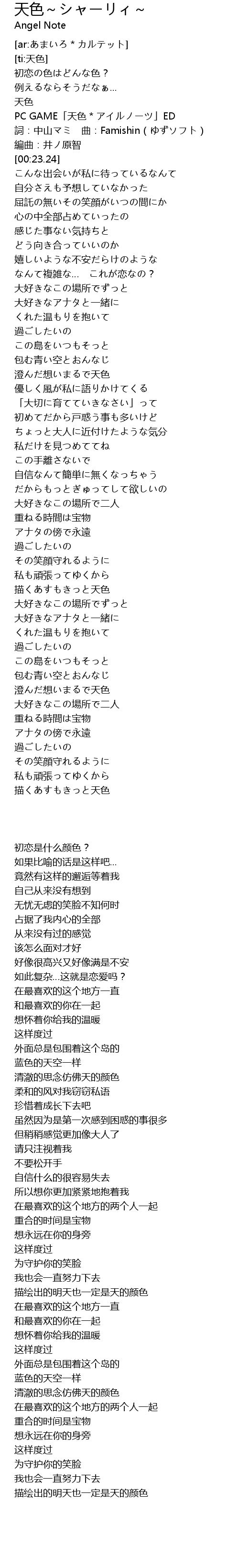 | [00:12.30] | PC GAME「天色*アイルノーツ」ED |